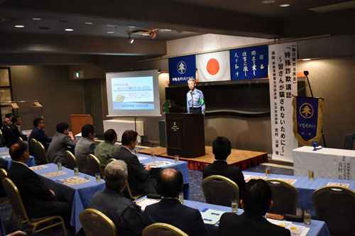 [写真/不正改造の防止や交通ルールの順守を呼び掛ける署員 ]