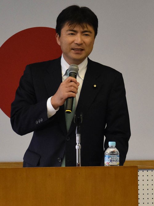 [写真/ふるさと納税について講演する古賀参院議員 ]