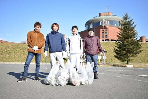 [写真/釧路湿原展望台の清掃活動を行った釧路みなとライオンズクラブマリモ支部の会員ら ]