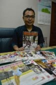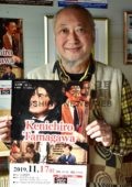 [写真/コンサートをアピールするサテンドールのマスターでJazzの街根室推進員の棚網宏さん ]