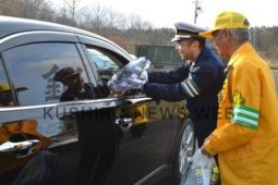 [写真/国道沿いでドライバーに安全運転を訴える参加者(根室市) ]