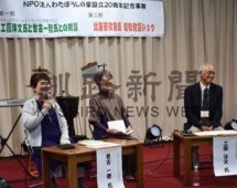 [写真/上映後、映像製作の経緯などを説明する真田さん(左) ]