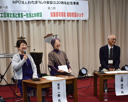 [写真/地域食堂と町づくりについて語り合う世古さん、伊藤さん、工藤代表(左から) ]