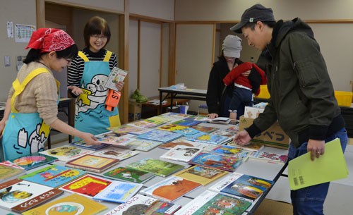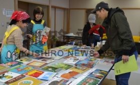 [写真/古本市でお気に入りの本を探す来場者ら ]