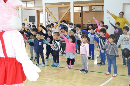 [写真/交通安全体操「あんぜんかくにんじゃ」を踊りながら交通ルールを学ぶ園児ら ]