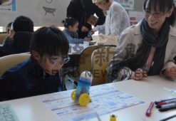 [写真/松田会長のアドバイスも受けながら演奏した生徒たち ]