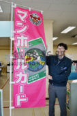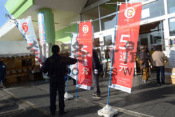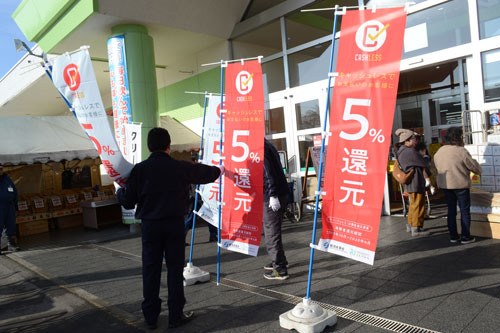 [写真/体制が整いキャッシュレス決済のポイント還元5%を知らせる旗を掲げるあるる ]