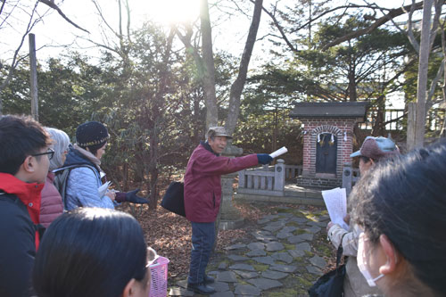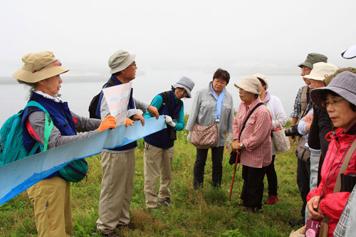 [写真/チャシ跡観光に欠かせないねむろトコロジストの会(左) ]