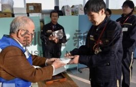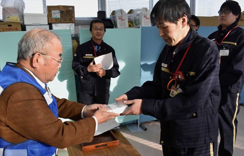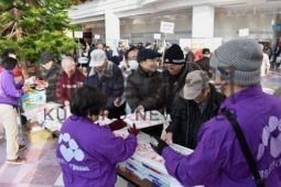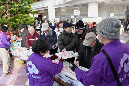 [写真/110番の適正利用を呼び掛ける署員(東武サウスヒルズ中標津店) ]