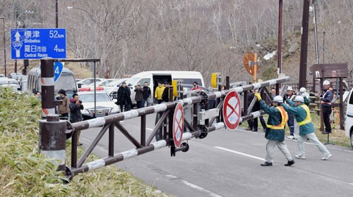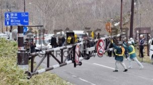 [写真/通行規制が行われた現場付近(23日午後6時30分ごろ) ]