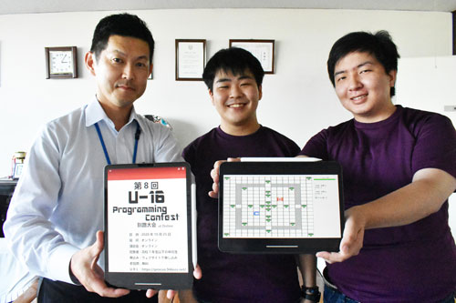 [写真/甘いトウモロコシを生産している高橋さん(右端)と従業員 ]