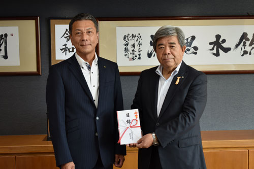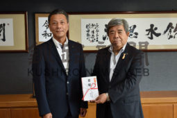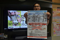 [写真/今秋、釧路開催のレバンガ北海道の公式戦をアピールする横田代表取締役CEO ]