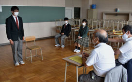 [写真/本番では女装して登場するというナビゲーター役の新里さん ]
