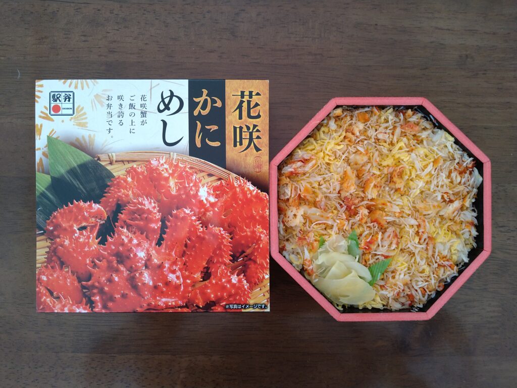 「花咲かにめし」(1100円)。根室特産の花咲蟹(ハナサキガニ)。〝カニ〟ですが〝やどかり〟の仲間です。