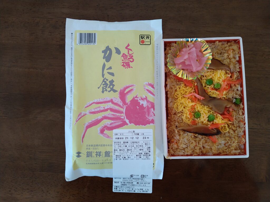 「釧路漁礁かに飯」(980円)。紙の包み紙は懐かしを感じます。
