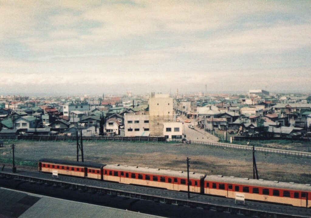 雄別鉄道のディーゼルカー(DC)とDCトレーラー(1965(昭和40)年ころ釧路駅の屋上から)