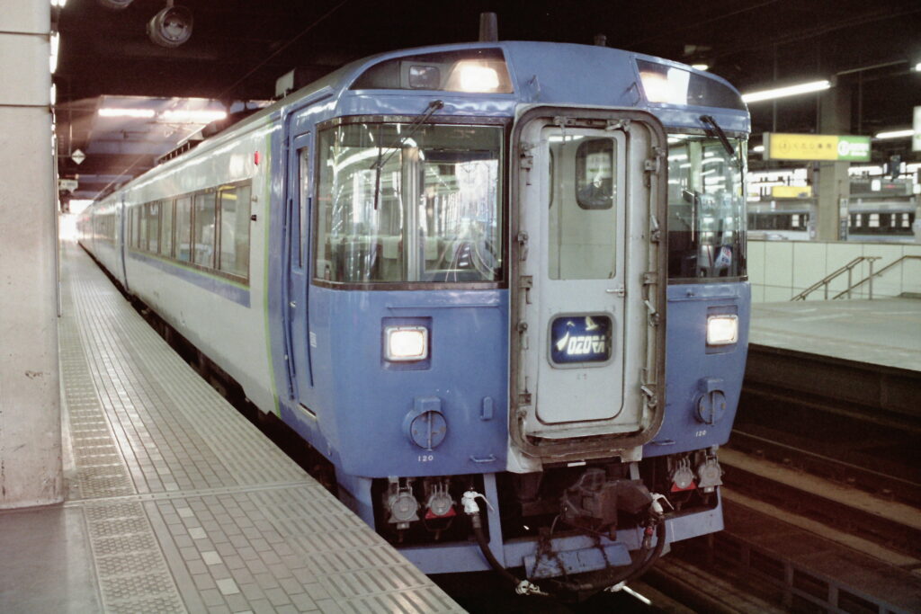 国鉄の分割民営化を前に最後のダイヤ改正が1986(昭和61)年11月1日に行われました。この際、「おおぞら」に投入されたのがキハ183系500、1500番台です。まず驚いたのが塗装の斬新さと室内が明るいこと。そして、前面がよく見える〝展望車〟のような先頭車両でした。「おおぞら」「まりも」で、この展望車にはお世話になりました。特に夜行に乗った時には、楽し過ぎて一睡もできませんでした。