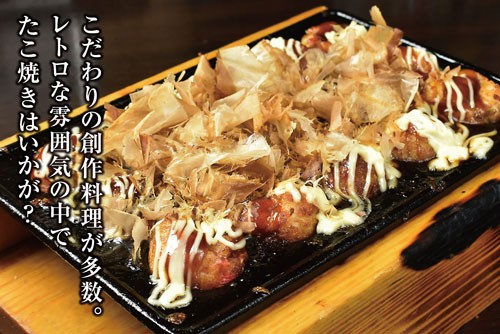 当店の3大名物のひとつ「鉄板たこ焼き」。その名の通り鉄板ごと提供されるのでアツアツが楽しめます。定番のたこ焼きをはじめ、からしマヨ・ネギ塩マヨ・チーズ明太マヨ・ミックスたこ焼きの全5種類をご用意。また、10個入りにてテイクアウトも可能です。他にもオリジナル特製味噌と道産和牛モツを使用し、コクと深みが自慢の「和牛もつ鍋」、風味豊かな卵麺に自家製チャーシューとメンマがのり、秘伝ダレを絡めた「油そば」がおすすめ。ご来店の際はぜひご賞味ください。