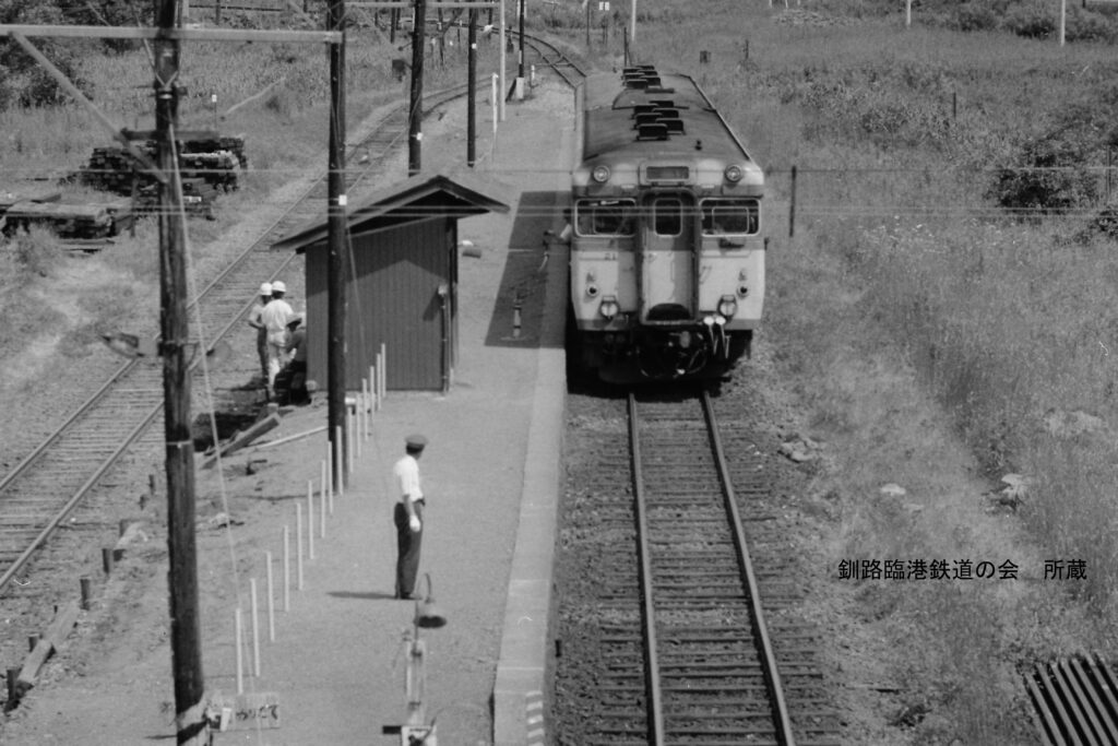 別保駅は上下の交換ができました。根室からやってきた急行ノサップが別保を通過します。白黒写真です。