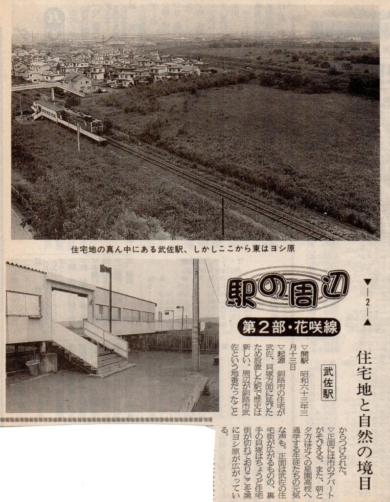 武佐は、駅の周辺が武佐という地名だったので名付けられました。近くに釧路星園高校(現在は統合されてありません)があり、また、住宅地も広がっていることから新たに駅が設けられました。私もたまに通勤などで使っています。