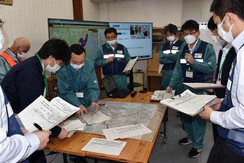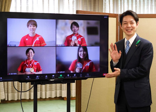 [写真/今回の不祥事について謝罪する土井会長(中央)ら ]