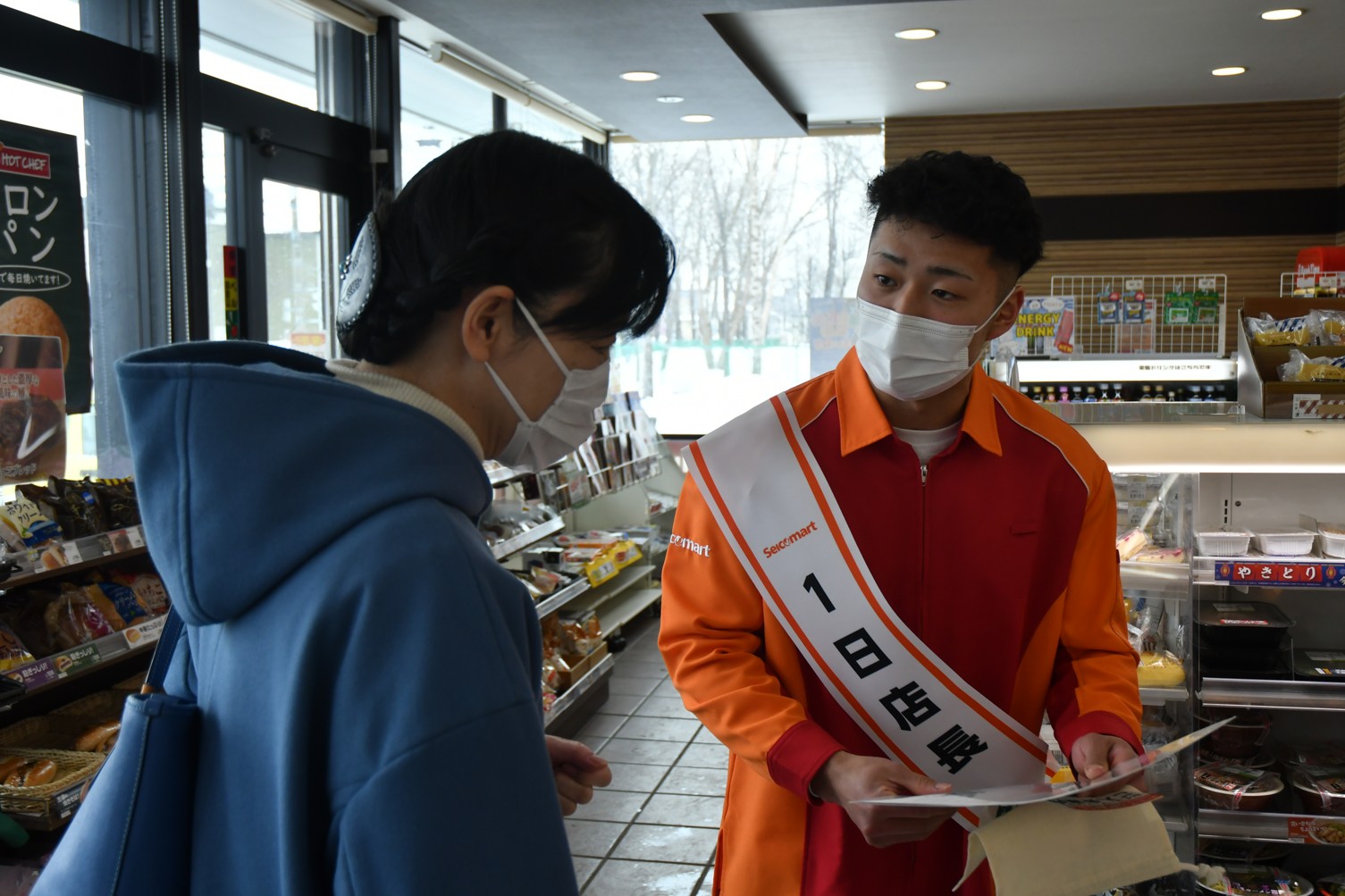 [写真/通行する自転車に安全利用を呼び掛ける釧路署員(2022年10月) ]