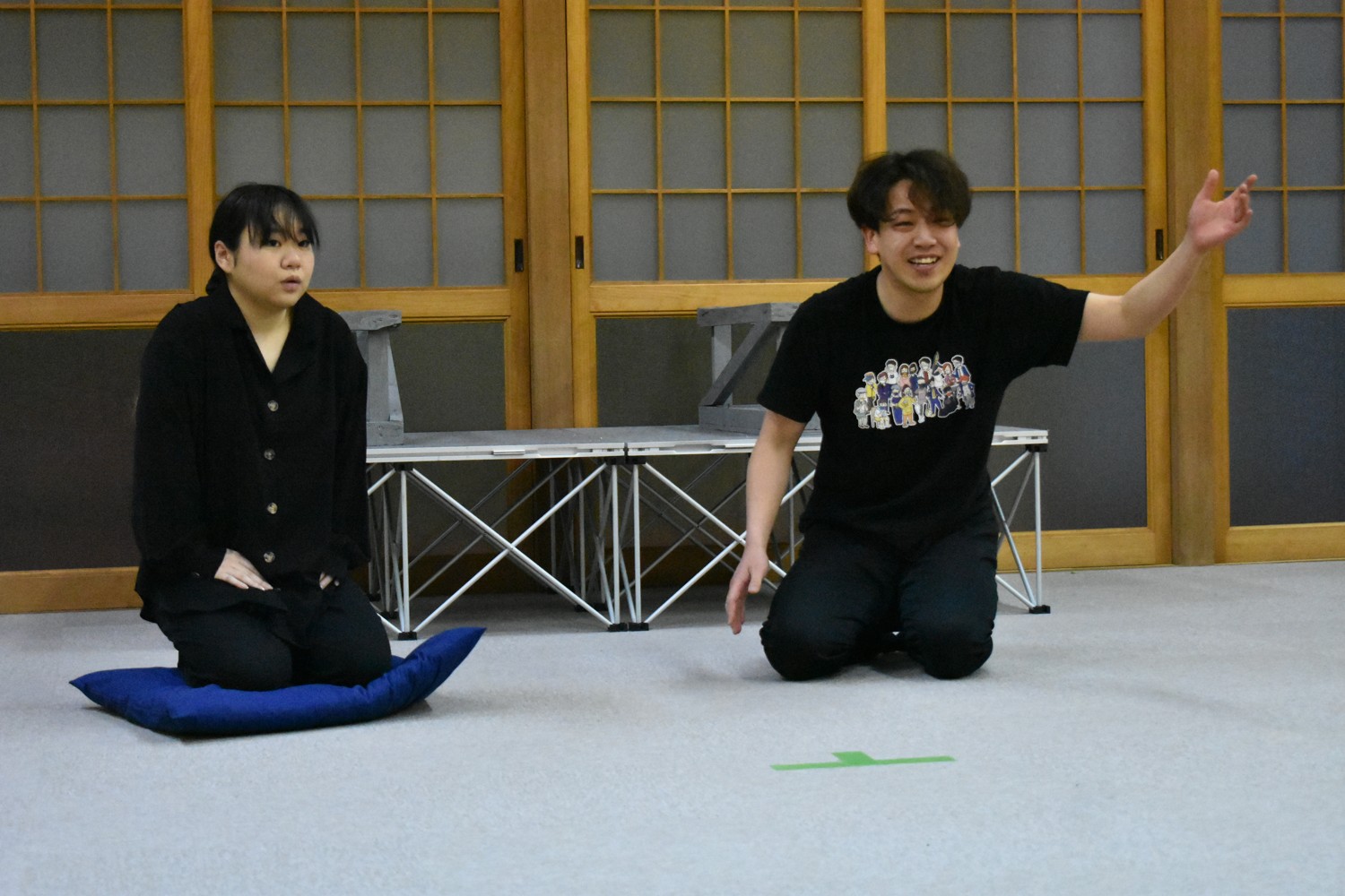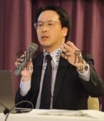 [写真/石井さん(中央)の助言を受けながらAEDの使い方を訓練する参加者 ]