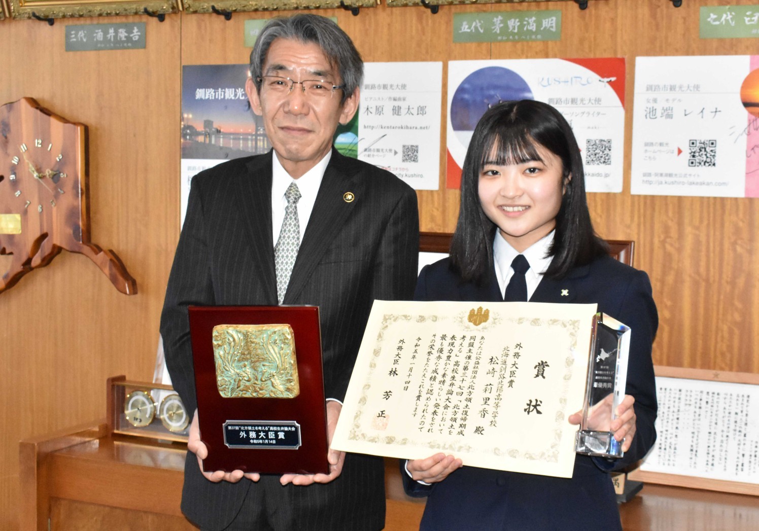 [写真/2年女子ダブルスで頂点に立った釧鳥取の高橋・竹林組 ]
