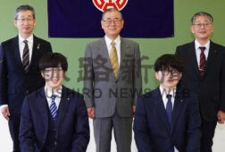 [写真/表彰状を手に佳作に選ばれた6人 ]