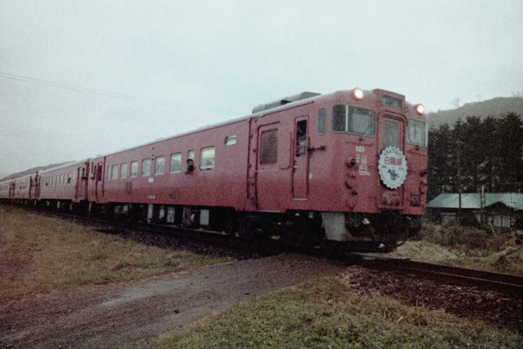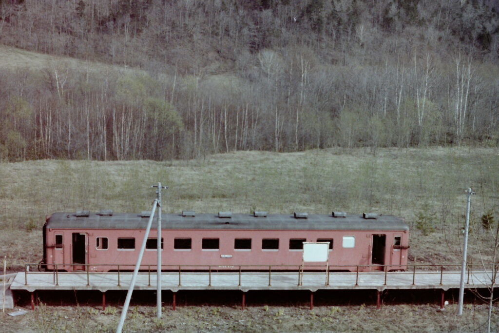 周囲に何もない北進駅で発車を待つキハ22(1981年5月)