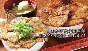 2種類のブランド豚の食べ比べができるお店の人気メニュー「豚ダブル」に新たに「塩豚丼」のダブルが登場。炭火で焼いた豚肉と特製のネギ塩だれは相性抜群!!女性にも人気で早くもリピートが続出のメニューです。また、豚の極はおかげで様で2周年を迎えます。その日頃の感謝の気持ちを込めて11月24日~26日までの3日間、「2周年記念大感謝祭」を開催。期間中店内でお食事の方限定で、①店主自慢の豚の角煮が食べ放題!! ②お食事代が10%OFF③生ビールが1杯300円、サワーが250円と嬉しい3つのお得を用意して皆様をお迎えします! 見逃せない3日間、ぜひご来店をお待ちしています!!