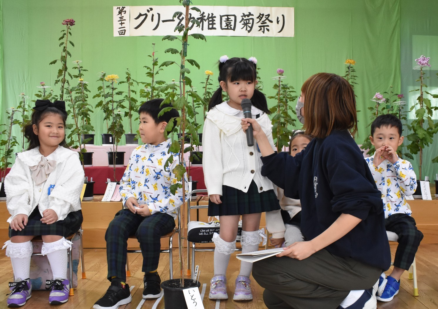 [写真/子供たちの前で次々と丸太を作るプロセッサー]