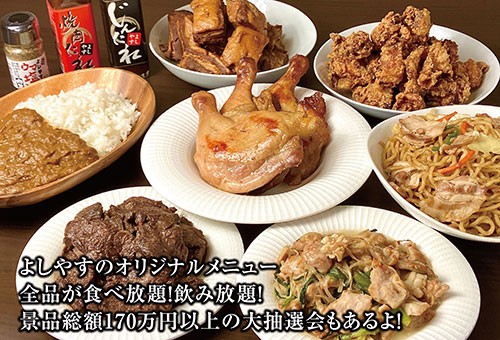 同店のオリジナルメニュー全品が食べ放題、もちろん各種お酒も飲み放題!