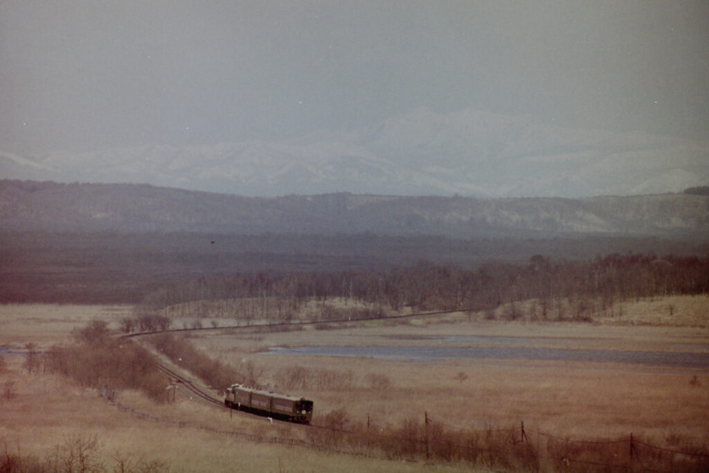 釧路湿原駅を出発する旧ノロッコ号(1993年4月)
