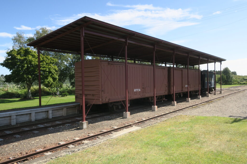 士幌駅跡に保存されているヨ4842・ハワム187711・ハワム187936