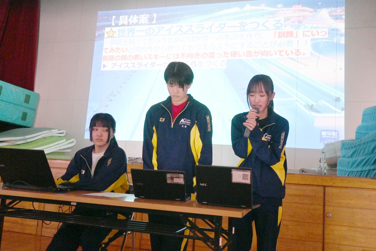 [写真/釧路地域の観光業活性化についてプレゼンする生徒ら]