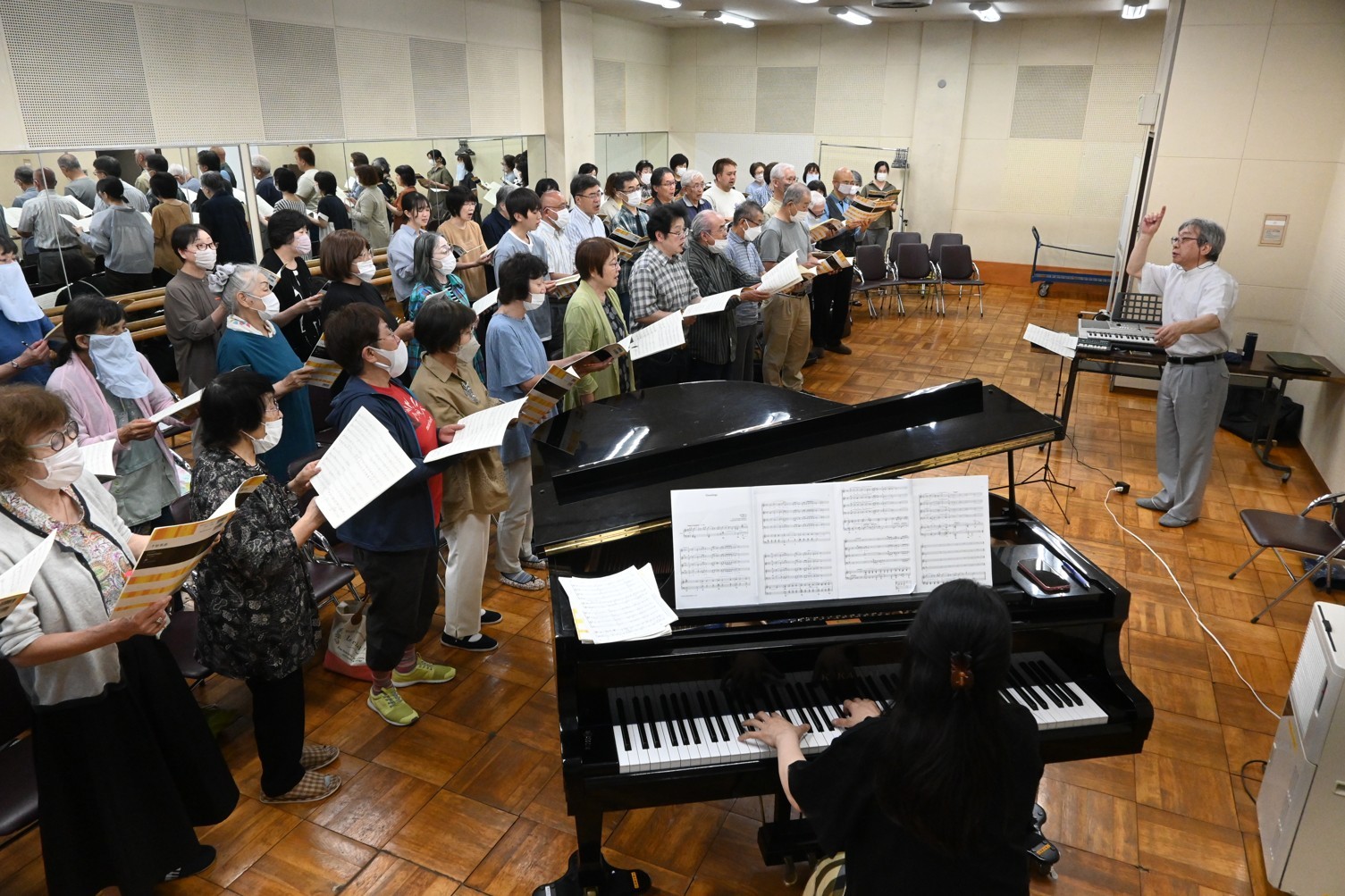 [写真/合唱祭に向け練習に励む有志]
