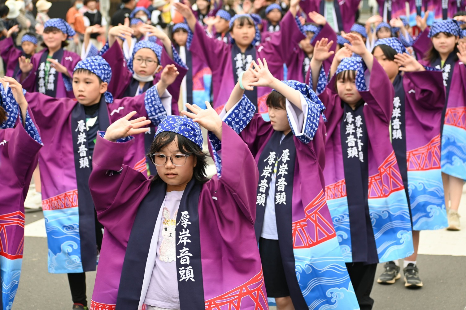 [写真/港まつりの開会を彩った厚岸音頭の市中大パレード]