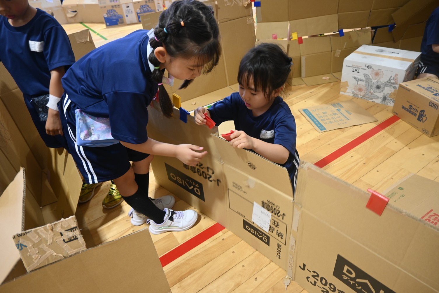 段ボールで基地作り 附属釧路前期、異学年と交流深める【釧路市】(2024-07-06)