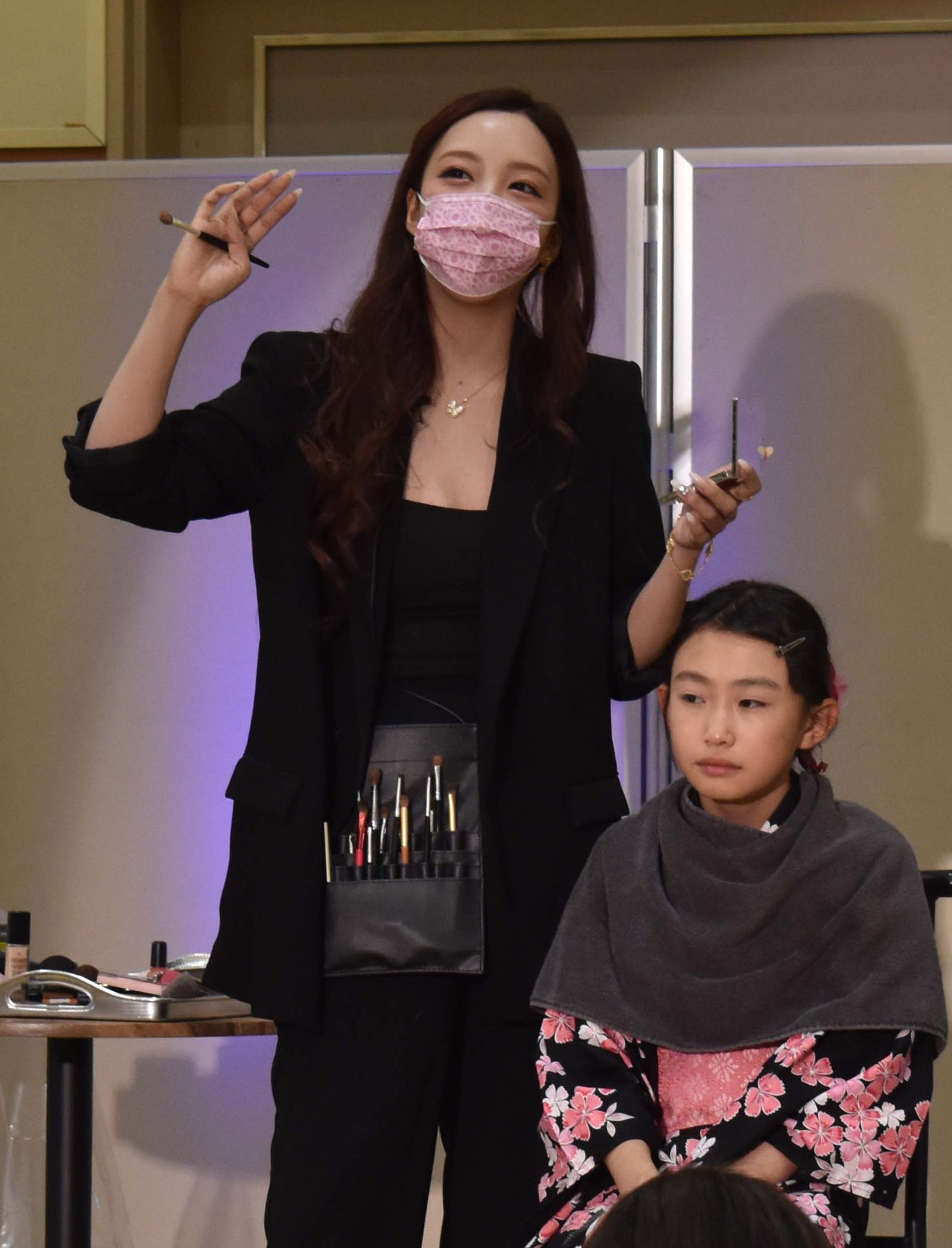 参加者モデルにメーク解説 ざわちんさん招きイベント【根室】(2024-07-06)