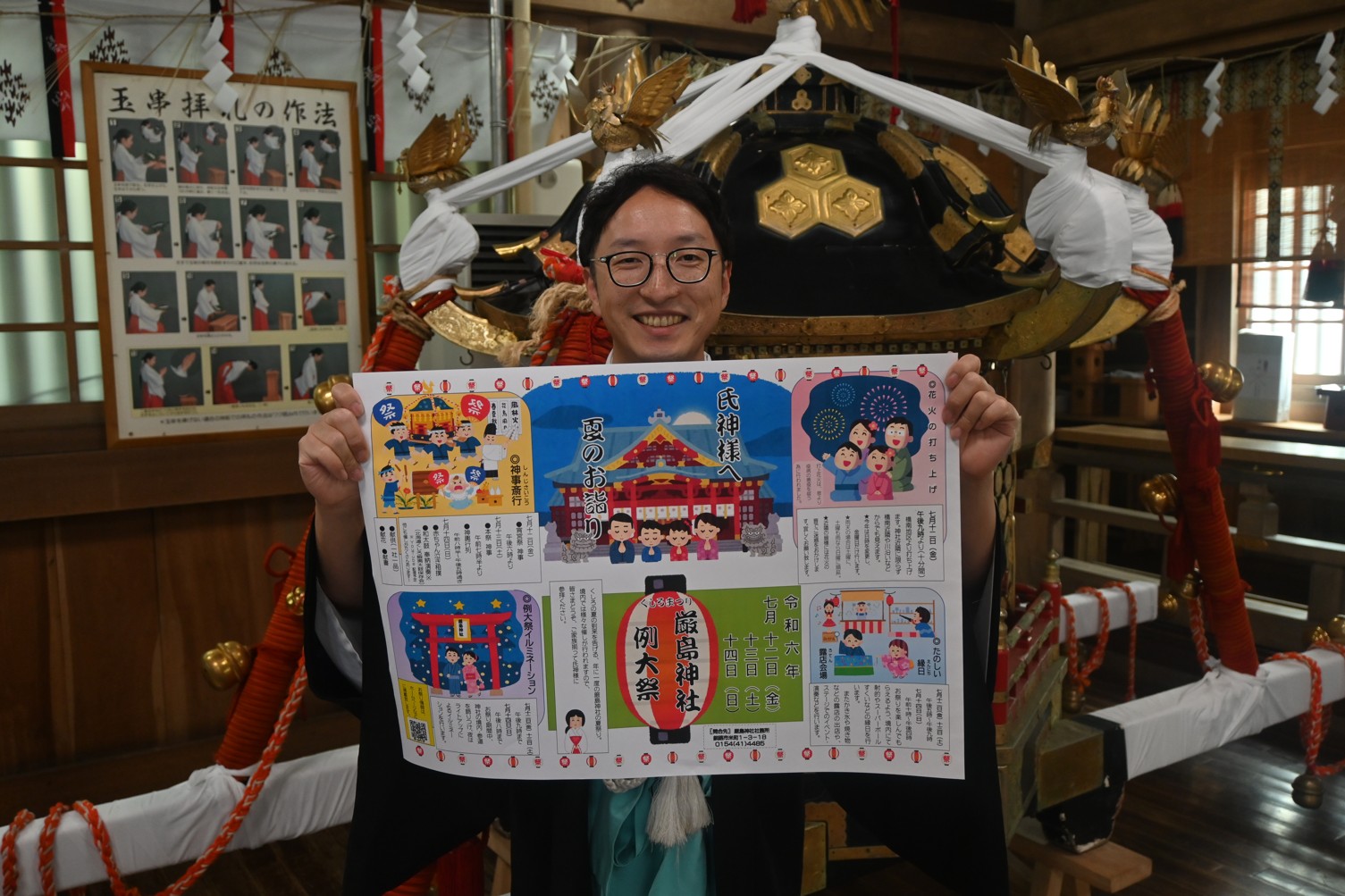 [写真/厳島神社例大祭をPRする菊池権禰宜]