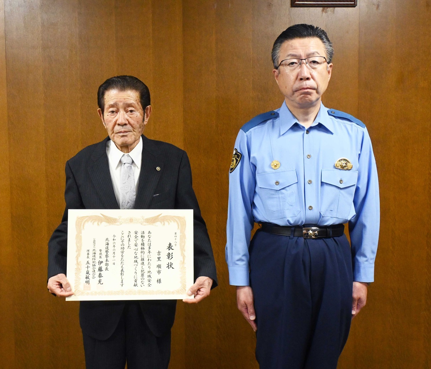 地域の防犯活動に尽力 吉里さんに全道表彰伝達【釧路市】(2024-07-06)