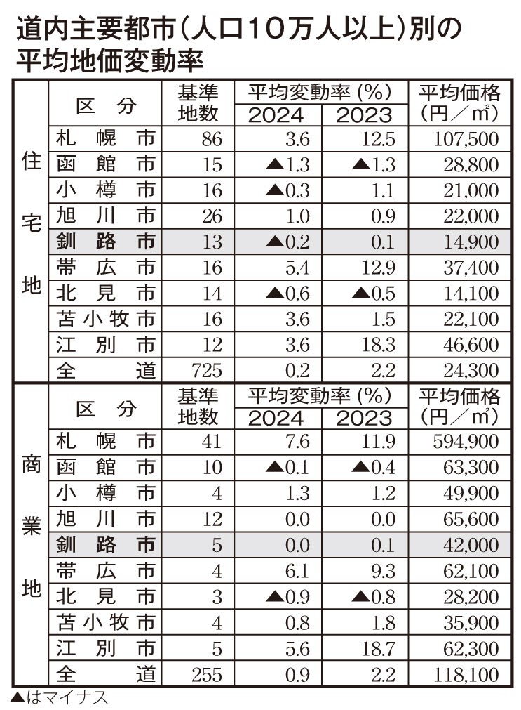 釧路管内基準地価 商業地 釧路町木場今年も1位(2024-09-18)