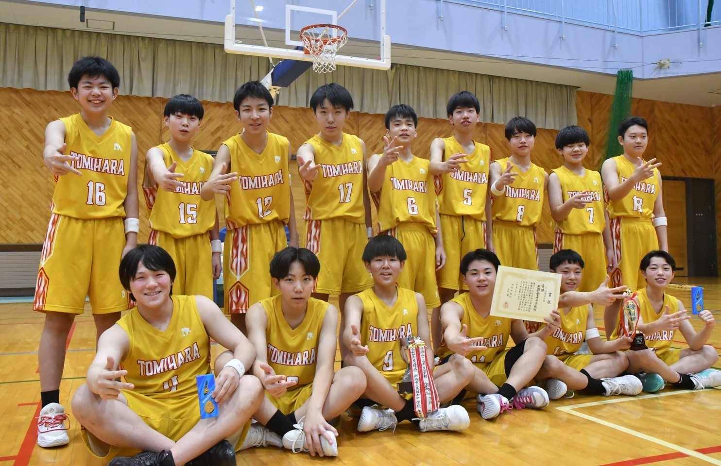 U15男子の部には22チームが出場。釧路町富原は第1シードで2回戦から臨むと、釧路町遠矢に120─6で貫禄勝ちする好スタートを切った。勢いそのまま準々決勝の中標津には79─27、準決勝の釧青陵に対しても67─43で危なげなく白星を手にした。