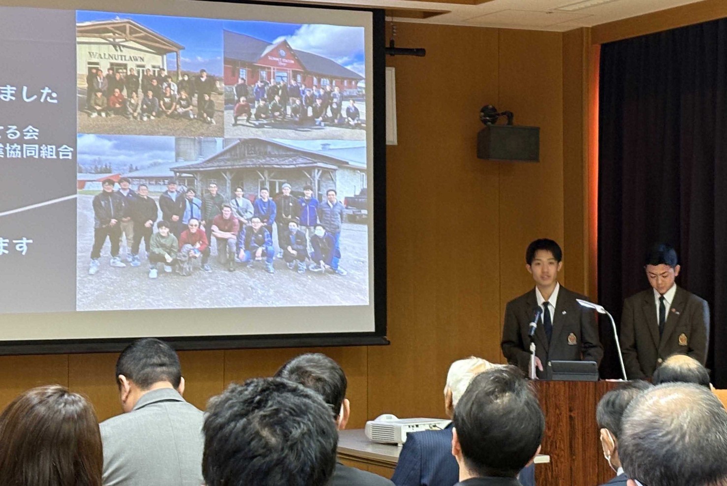 影山さんは「緊張することなく自信を持って発表できた」、山口さんは「自分たちの経験をしっかりと伝えられた」とそれぞれ笑顔を見せた。発表を聞いた酪農経営科2年の木村滉起さん(17)は「来年、海外研修に行きたいと考えているので、今回の発表を参考にしたい」と話していた。 (嶋守善一)