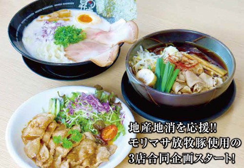 生産者から直接購入することが出来るシステムでの販売となっていますが、今回釧路の飲食店3店がモリマサ放牧豚の各部位を使用したメニューを2月6日から発売することになりました。(ビストロジョワ=豚ロース・釧路拉麺はま虎=ホルモン・麺道昇憲=豚骨)地産地消をテーマにしたモリマサ商店と3店のコラボ企画メニュー、この機会に是非ご堪能ください!!