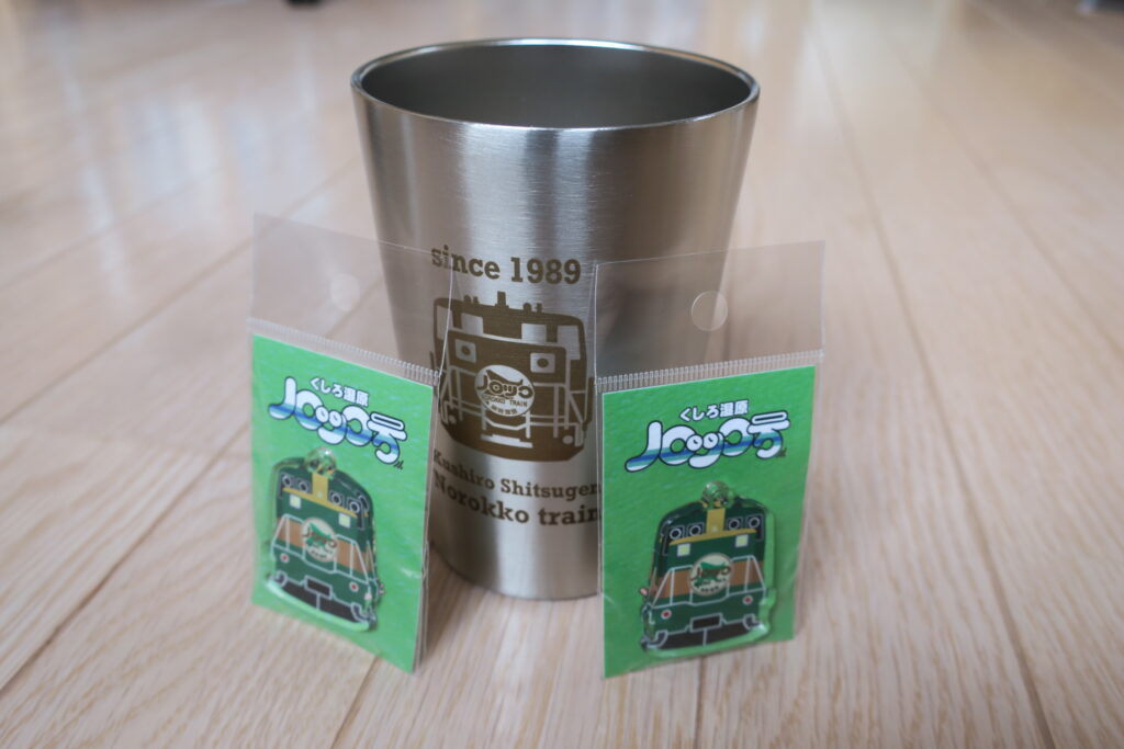 車内販売の今シーズン新商品、タンブラーとアクリルチャーム