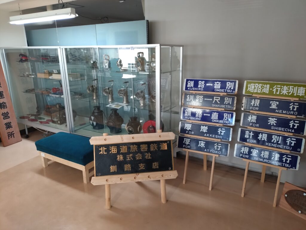 釧路駅の正面に向かって左側にある綠の建物の1階に北海道鉄道OB会釧路支部の鉄道資料室があります。5月は3、4、5、6日の10時から13時30分まで特別オープンしています。入場は無料です。ノロッコ号に乗車される方はぜひご覧ください。懐かしい国鉄を感じられます。
