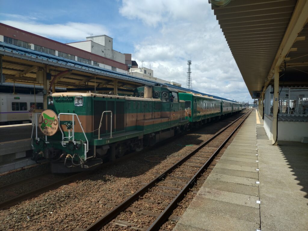 釧路駅で出発を待つ綠を基調にしたノロッコ2号