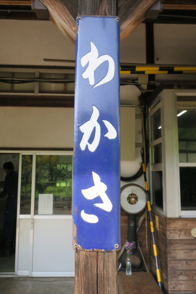 柱に取りつけられた「わかさ」に昭和を感じます